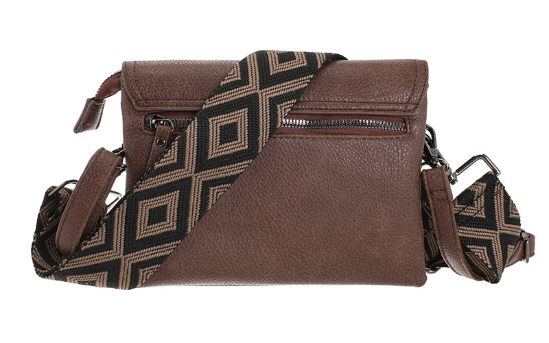 Onder de flap vind je een handig steekvak én een veilige ritssluiting. Die rits opent naar twee aparte vakken, zodat je je essentials overzichtelijk kunt opbergen. Aan de achterkant? Nog een extra ritsvak – perfect voor wat je graag snel bij de hand hebt.