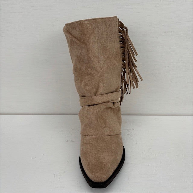 Dit cowboylaarsjes wil je hebben! Ze zijn super gaaf afgewerkt met leuke franjes en gespjes. Ze vallen op maat en hebben een rits aan de binnenkant voor de eenvoudige instap. De laarzen zijn 26cm hoog incl. hak van 4 cm. De schachtwijdte is 36 cm.