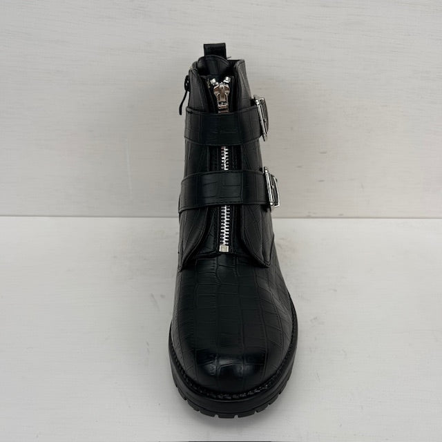 Croco enkellaarsjes met gespjes zwart