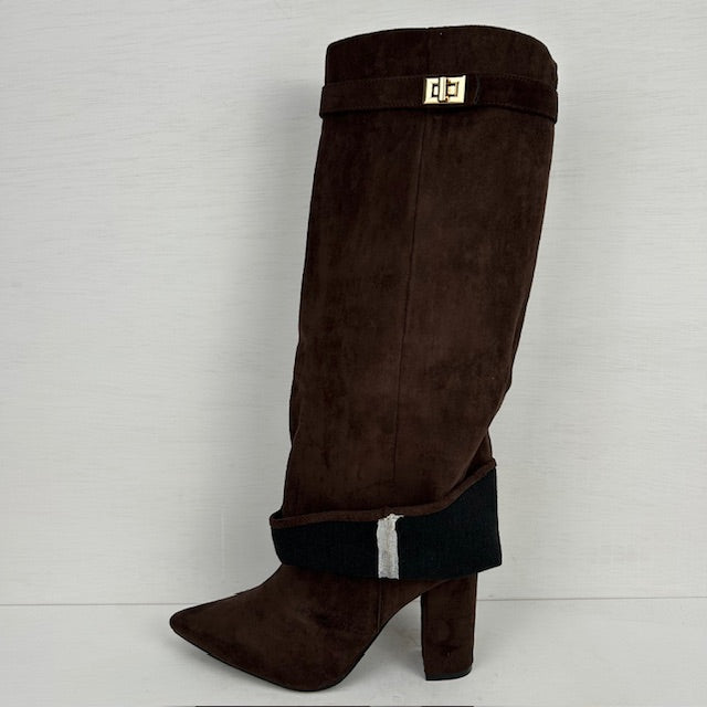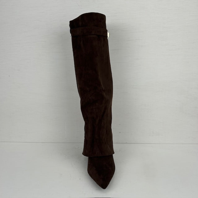 Wat een geweldige suèdine cowboylaarzen! Ze zijn superleuk afgewerkt met een trendy flap met een bandje. De laarzen vallen op maat en hebben een rits aan de binnenkant voor de eenvoudige instap. De laarzen zijn 45 cm hoog incl. hoge hak van 9 cm. De schachtwijdte is 42 cm.