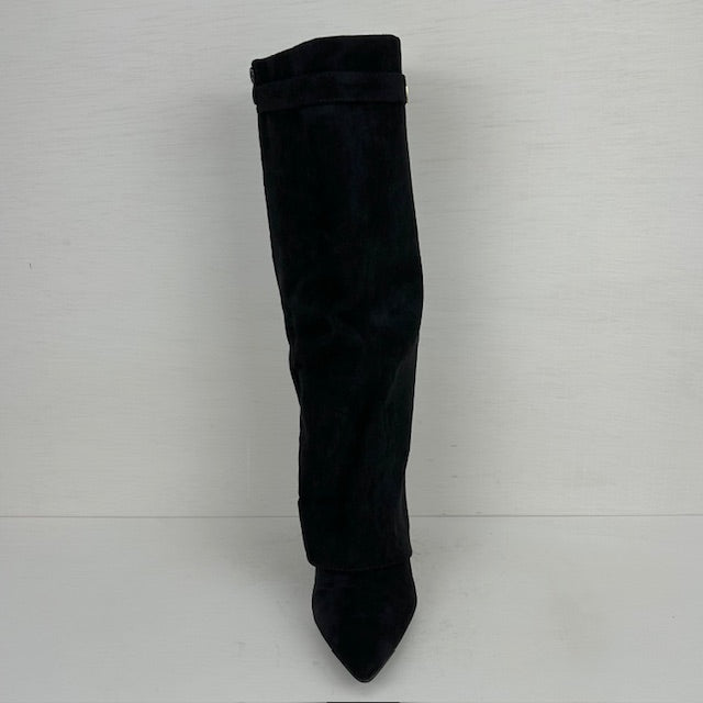 Wat een geweldige suèdine cowboylaarzen! Ze zijn superleuk afgewerkt met een trendy flap met een bandje. De laarzen vallen op maat en hebben een rits aan de binnenkant voor de eenvoudige instap. De laarzen zijn 45 cm hoog incl. hoge hak van 9 cm. De schachtwijdte is 42 cm.