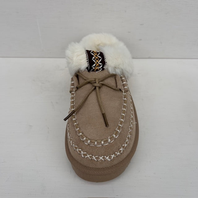Zijn ze niet geweldig? Deze instappantoffels zijn heerlijk zacht gevoerd met furry, en zijn leuk afgewerkt met veters en een leuk stiksel. Ze vallen op maat.