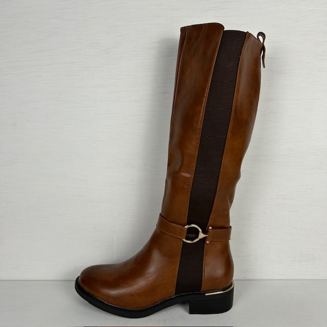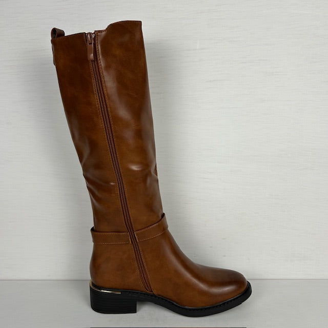 Wat een supermooie leatherlook laarzen! De laarzen zijn afgewerkt met een bandje met een leuk gouden detail. Ze hebben elastiek aan de zijkant en vallen op maat. Verder hebben de laarzen een rits aan de binnenkant voor de eenvoudige instap.