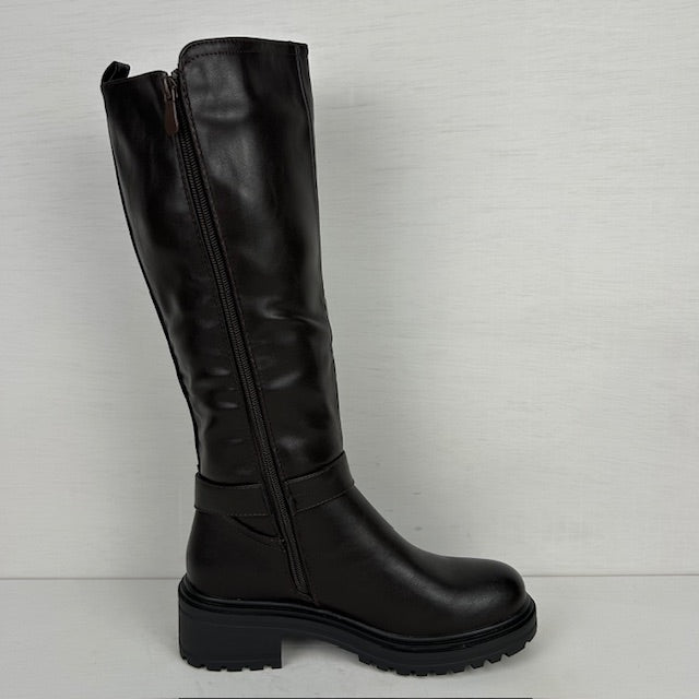 Leuke hoge leatherlook laarzen! De laarzen zijn afgewerkt met een bandje met een leuk detail. Ze hebben elastiek aan zijkant en vallen op maat. Verder hebben de laarzen een rits aan de binnenkant voor de eenvoudige instap.
