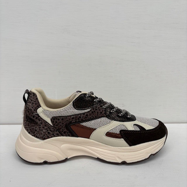 Met de AYOKI dames sneakers in beige en bruin maak je moeiteloos een stijlvol statement. De combinatie van panterdetails, glanzende accenten en stevig imitatieleer zorgt voor een eigentijdse look. Dankzij het ademende mesh en de chunky beige zool zijn deze sneakers perfect voor dagelijks gebruik én een avondje uit.