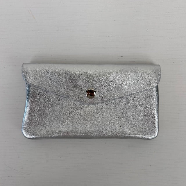 Super leuke metallic portemonnee van real leather. De portemonnee heeft drie vakjes waarvan één met ritssluiting.