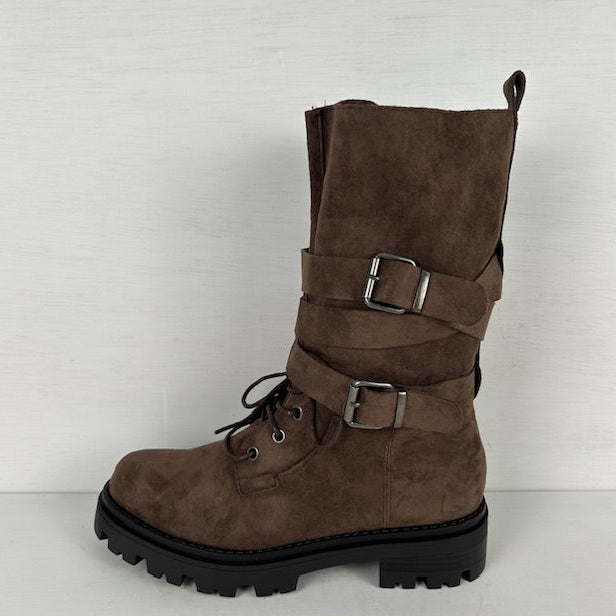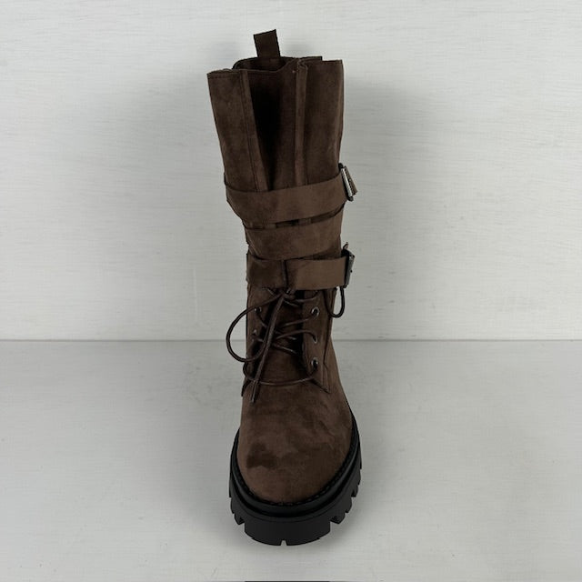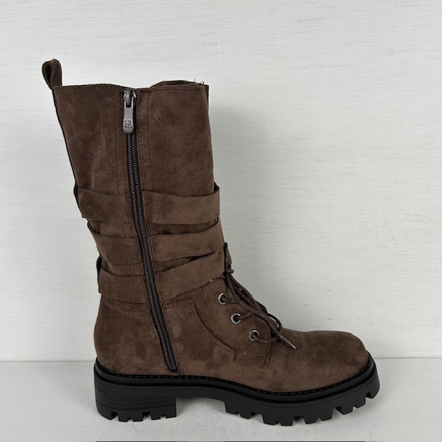 Wat een gave laarzen! De laarzen zijn gemaakt van sùedine en zijn stoer afgewerkt met gespjes en een stoere zool. Ze vallen op maat een hebben een rits aan de binnenkant voor de eenvoudige instap.
