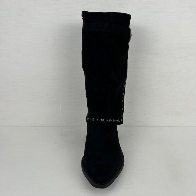 Zijn deze cowboylaarzen niet geweldig? Ze zijn super leuk afgewerkt met een flap met studs en een gespje wat ze extra sierlijk maakt. Ze vallen op maat en hebben een ritsje aan de binnenkant voor de eenvoudige instap. De laarzen zijn 30 cm hoog incl. hak van 7 cm. De schachtwijdte is 36 cm.