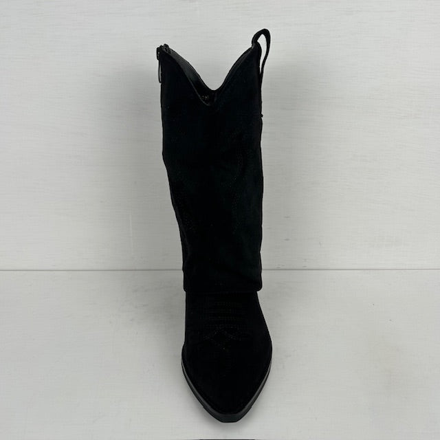 Suèdine cowboylaarsjes met trendy flap zwart