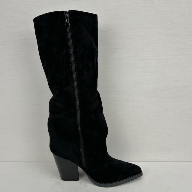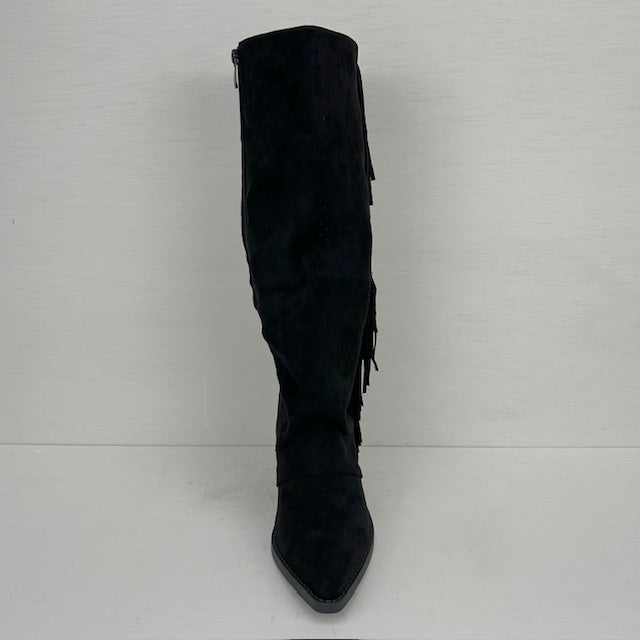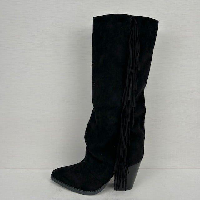Suèdine cowboylaarzen met franjes en hoge hak zwart