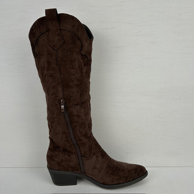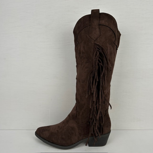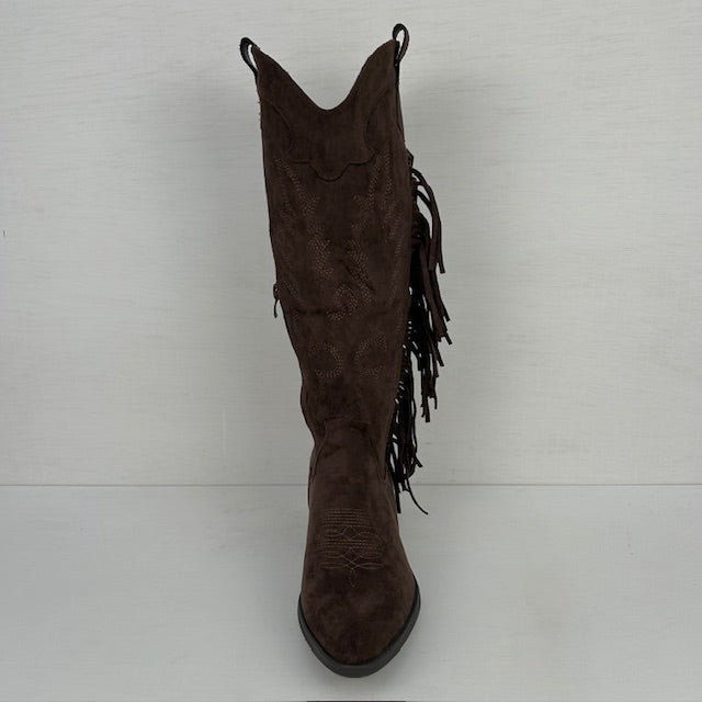 Suèdine cowboylaarzen met franjes en stiksel bruin