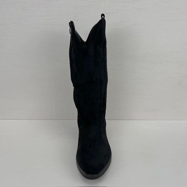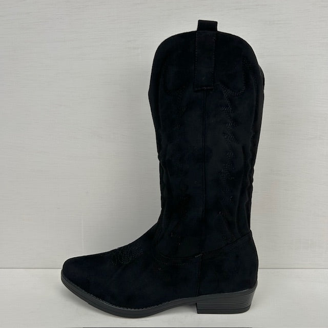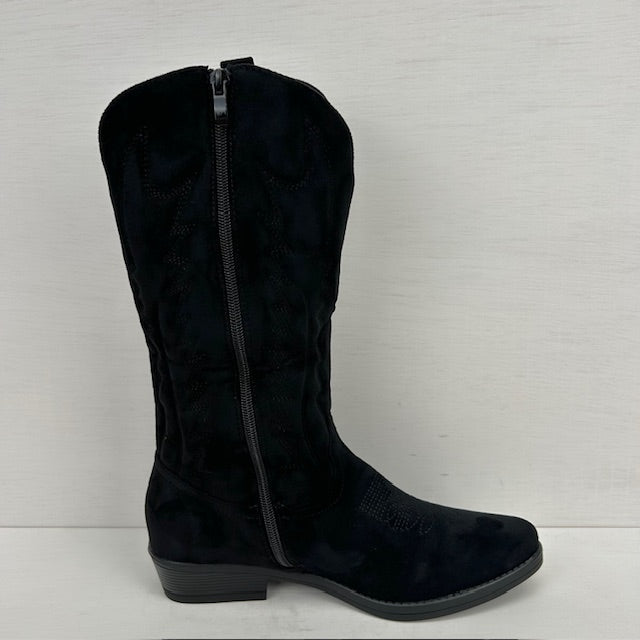 Suèdine cowboylaarzen met laag hakje zwart