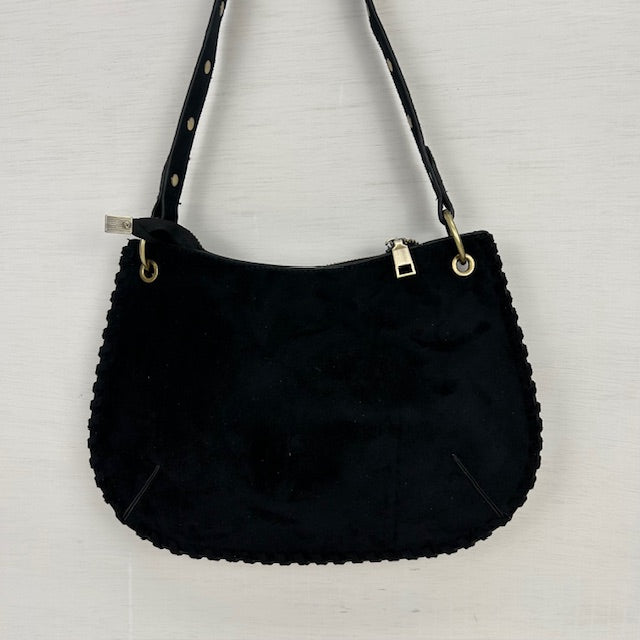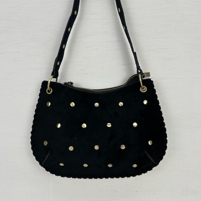 Wat een geweldig schoudertasje van suèdine! Het tasje is leuk afgewerkt met studs en wordt geleverd met een extra verstelbare band zodat je hem op verschillende manieren kunt dragen. Verder heeft het tasje binnenin twee grote vakken en een klein vakje met rits.