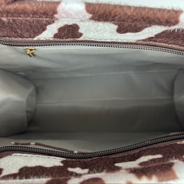 Mega leuke tote bags met koeienprint! De tote bag is de trend van dit moment! De tas is afgesloten met een ritssluiting en heeft binnenin nog een klein vakje met ritssluiting. De tas wordt geleverd met een verstelbare band zodat je hem ook als schoudertas kunt dragen.